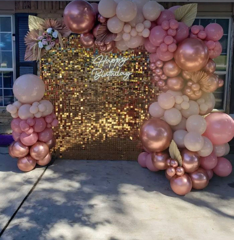 Introducing our stunning shimmery backdrop, perfect for adding a touch of glamour to event or photoshoot. Its shimmering surface catches the light beautifully, creating an enchanting atmosphere that enhances your special moments. Whether it's a wedding, birthday party,
